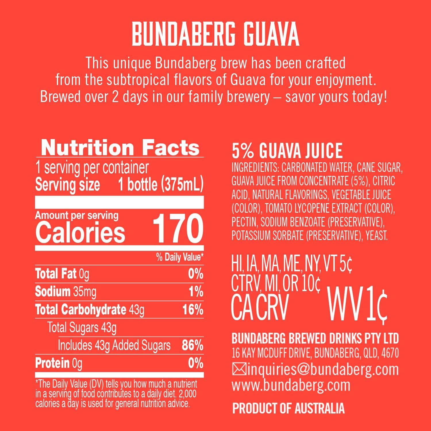 Bundaberg: Sparkling Guava, Fruit Drink, 12.7 oz., 4 Pack