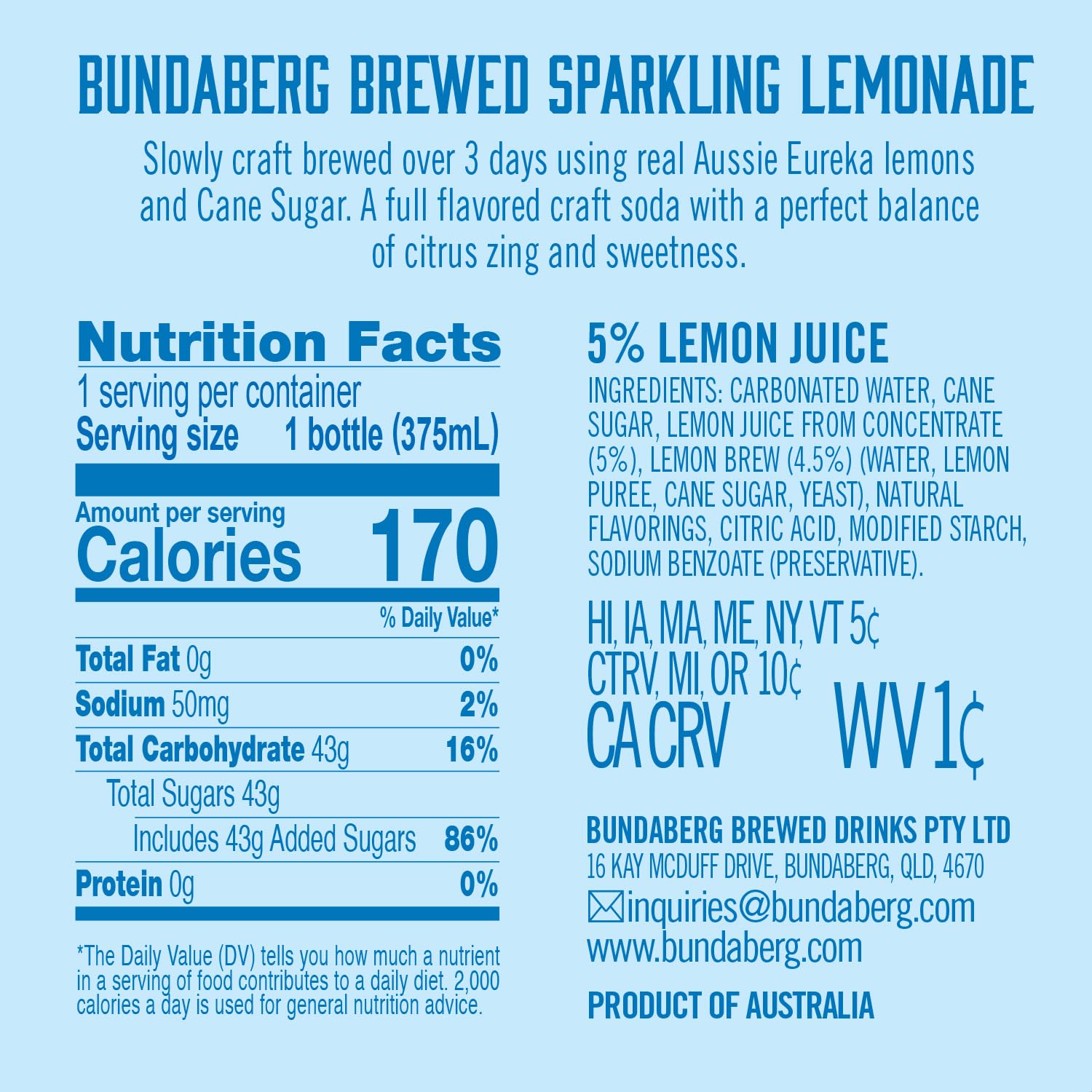Bundaberg: Sparkling Lemonade, 12.7 oz., 4 Pack