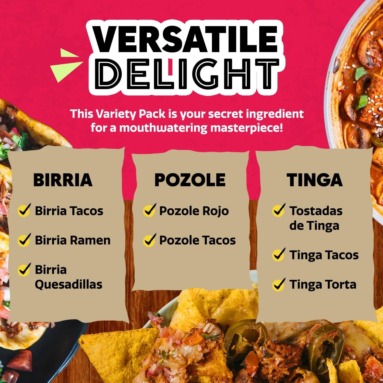 EZ Bombs: Variety Pack, Pozole, Tinga & Birria Bomb Seasonings, 2 Pack of Each Flavor, 6 Pieces