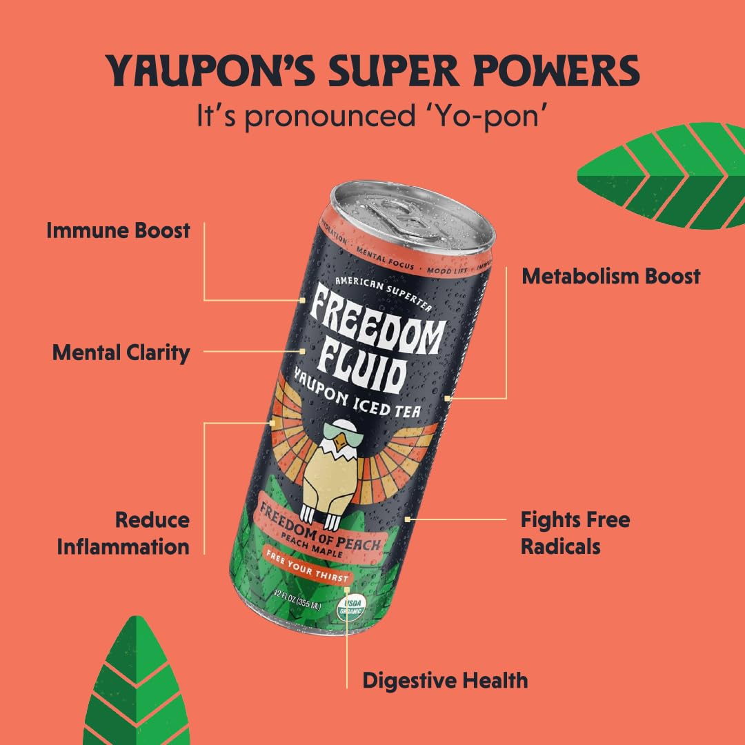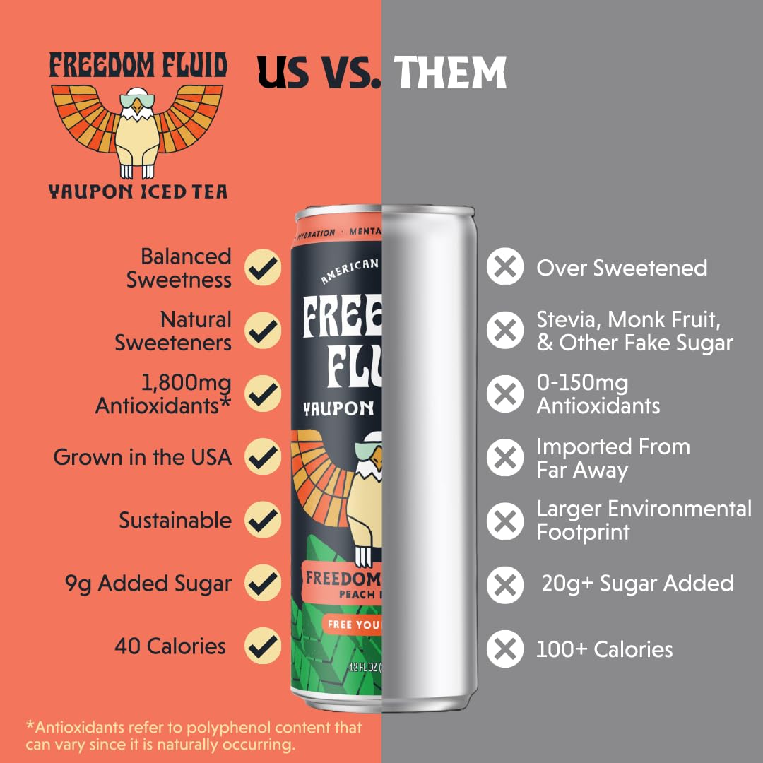 Freedom Fluid: Yaupon Iced Tea, Refreshing Peach, 12 oz., 12 Pack