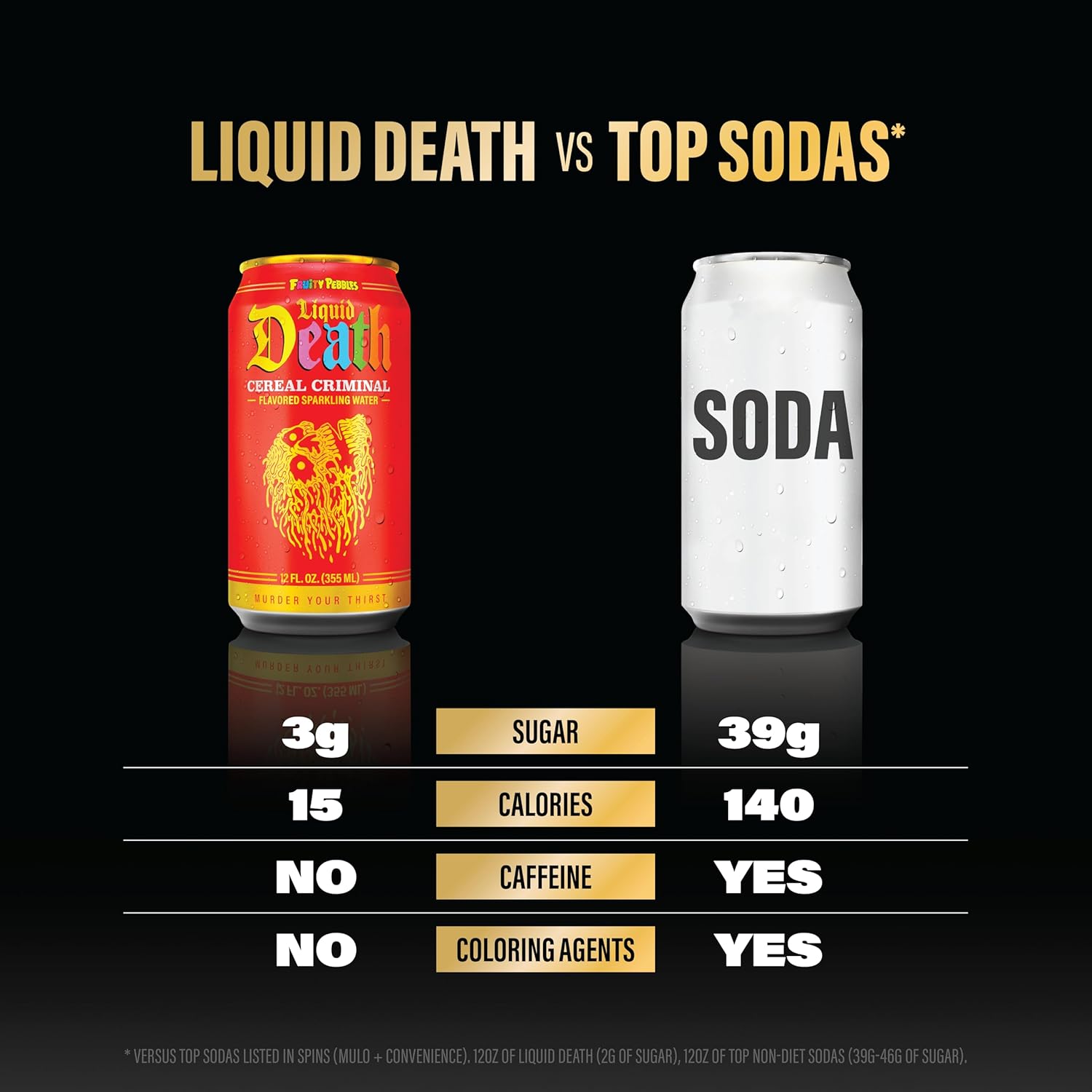 Liquid Death: Cereal Criminal, Fruity Pebbles Flavored Sparkling Water, 12 oz., 12 Pack