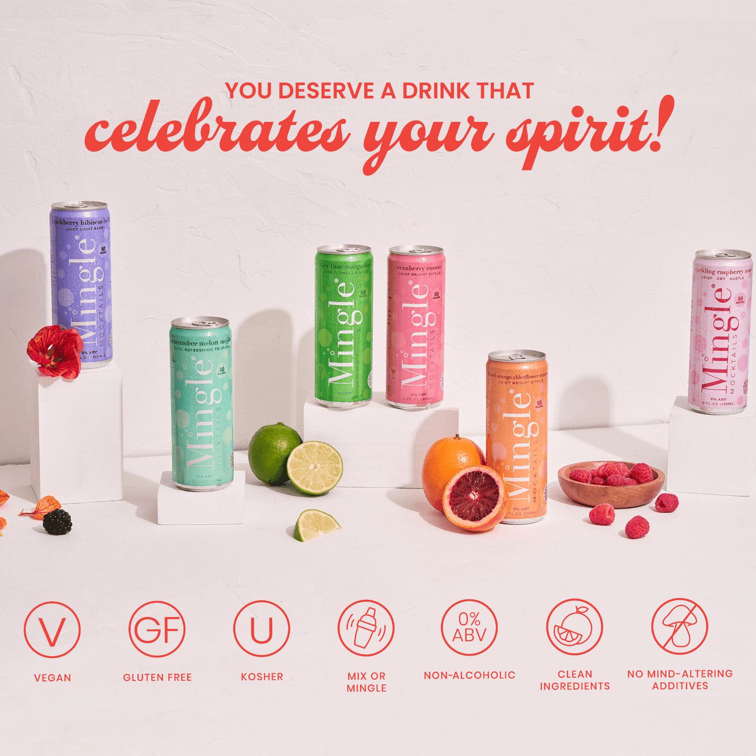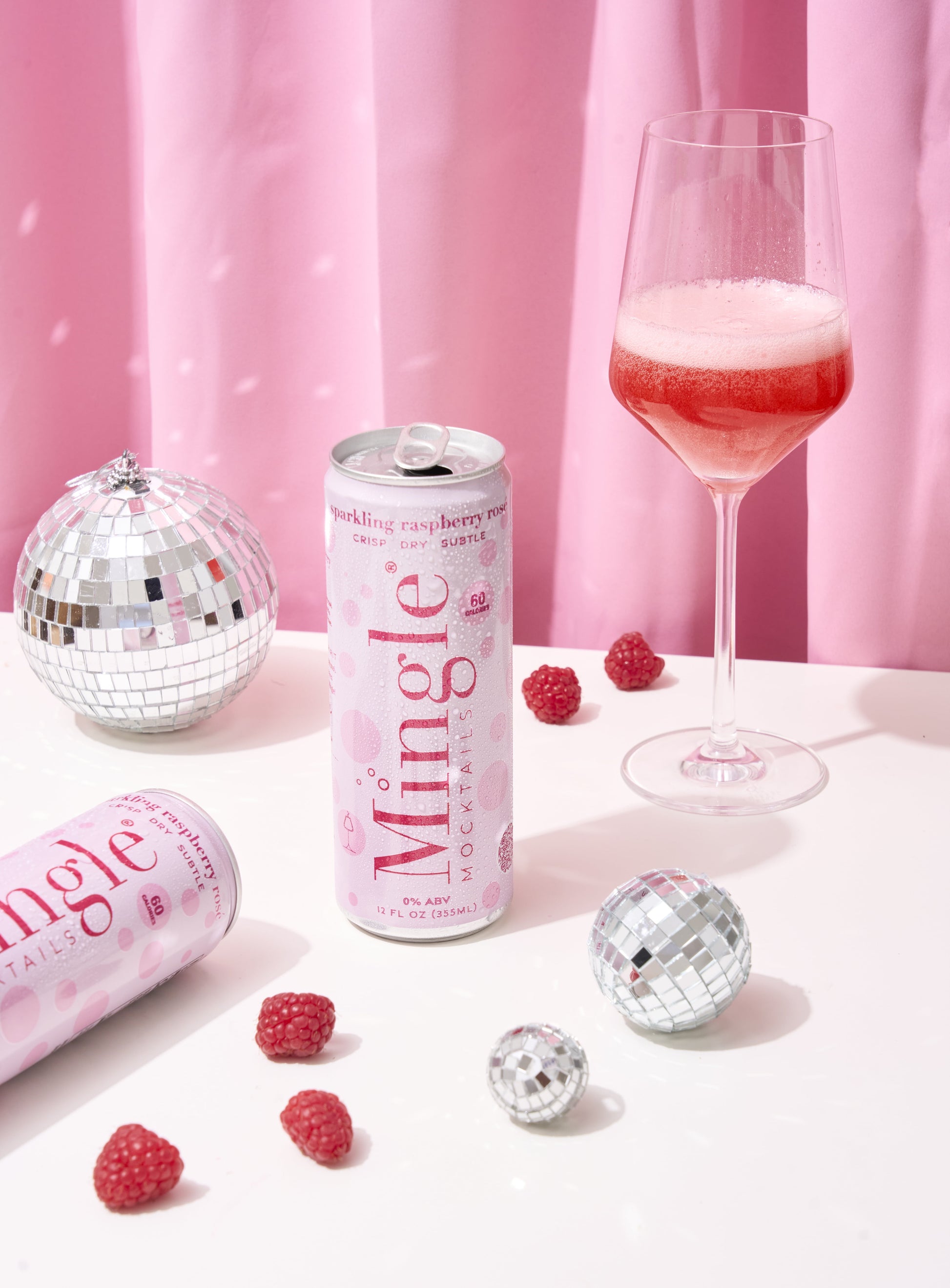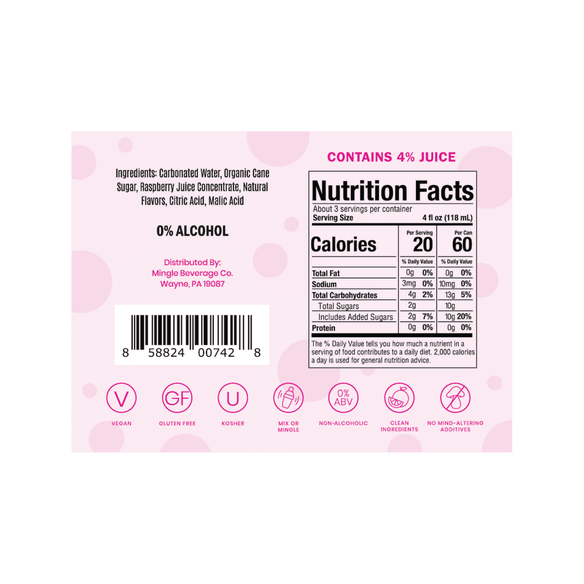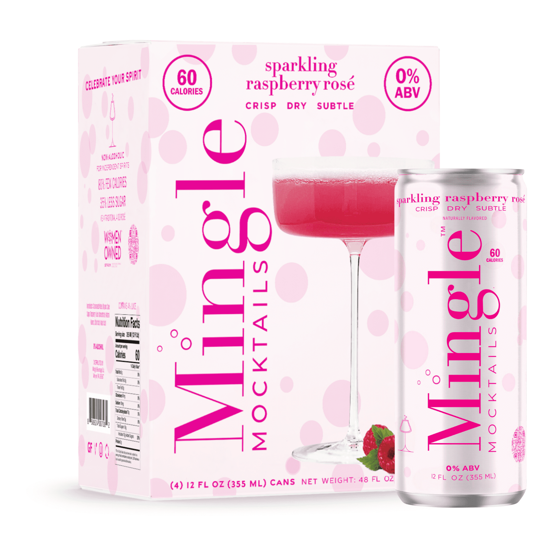 Mingle Mocktails: Sparkling Raspberry Rose Non-Alcoholic, 12 oz., 4 Pack