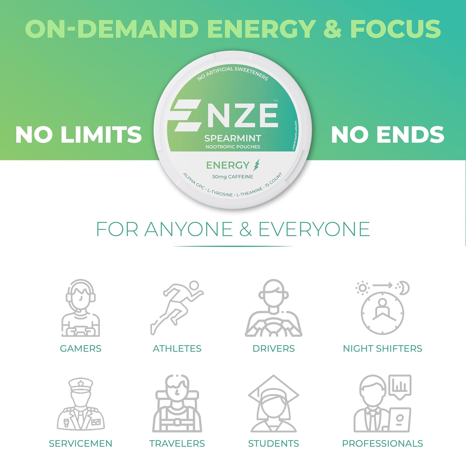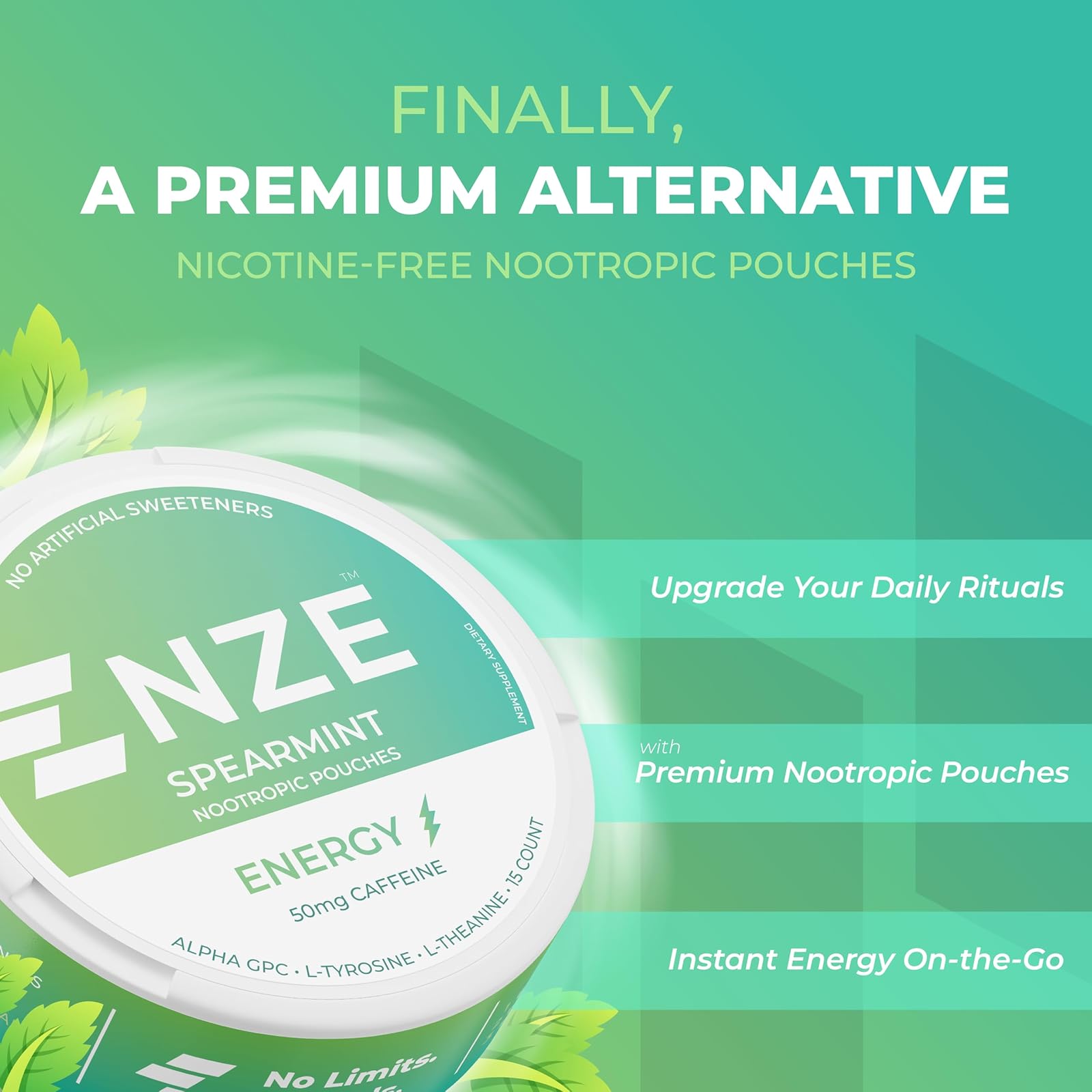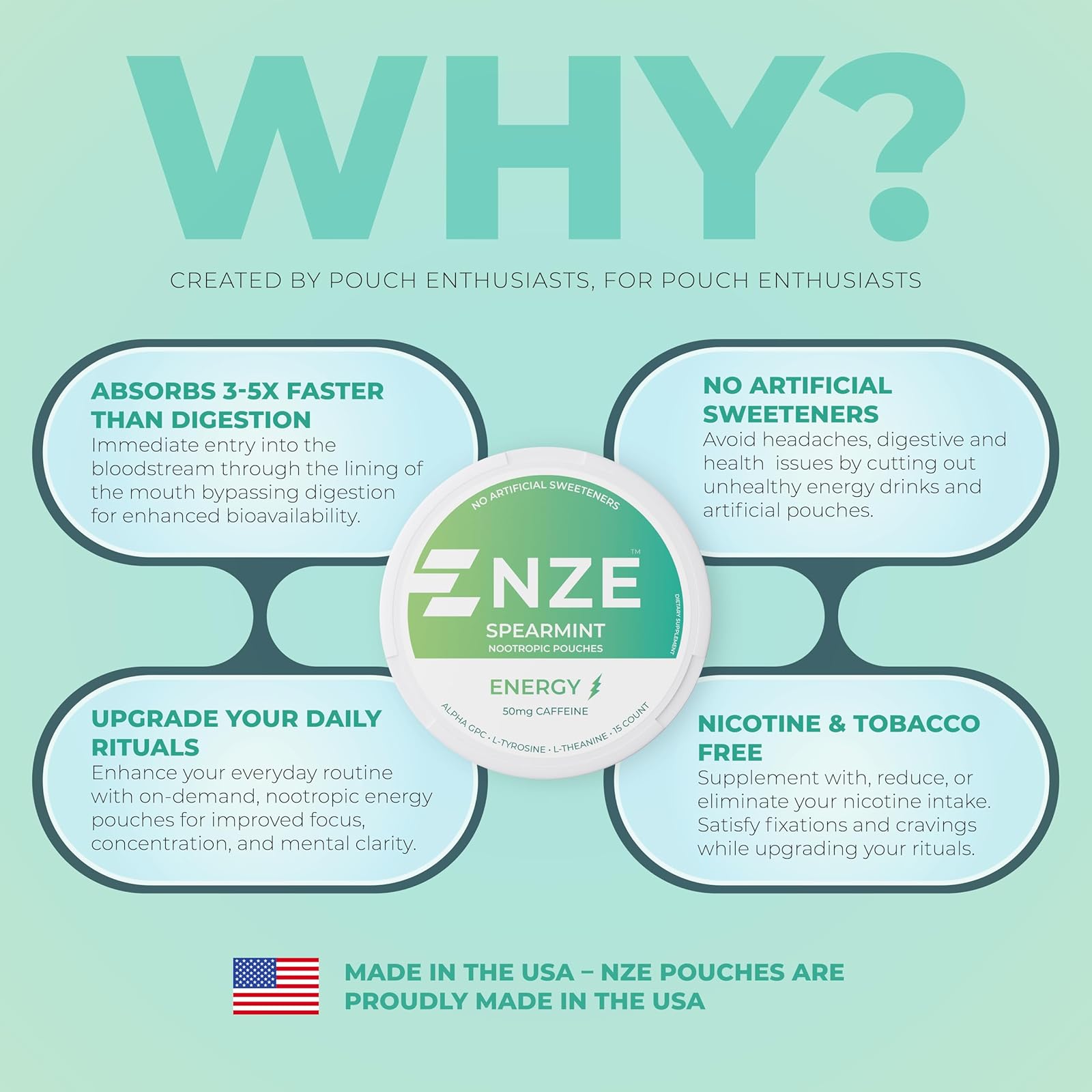 NZE: Caffeine Energy Pouch, Nootropic Spearmint, 5 Pack