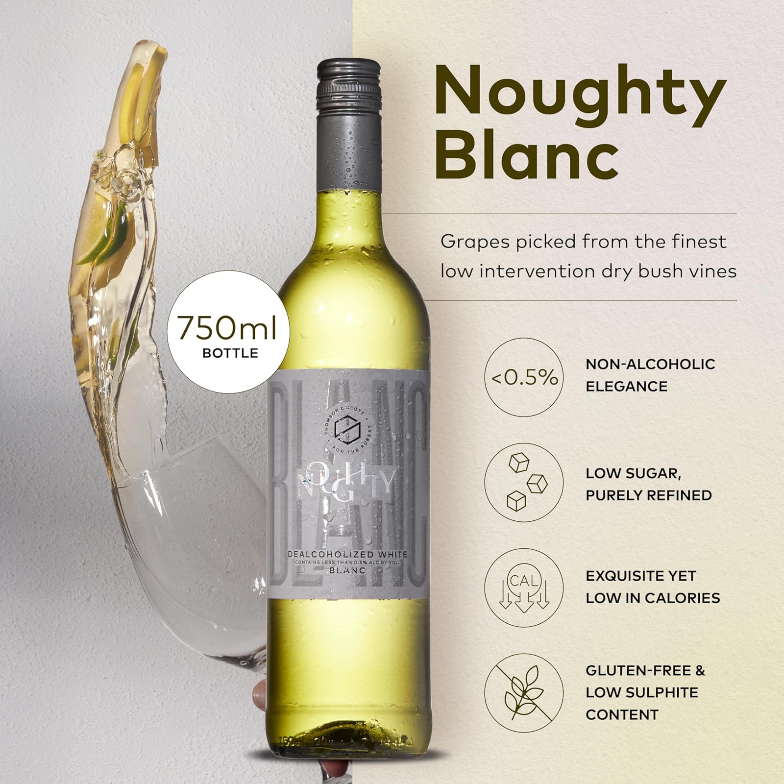 Wine: Thomson & Scott Noughty: Sauvignon Blanc, Non-alcoholic White Wine, 1 Bottle